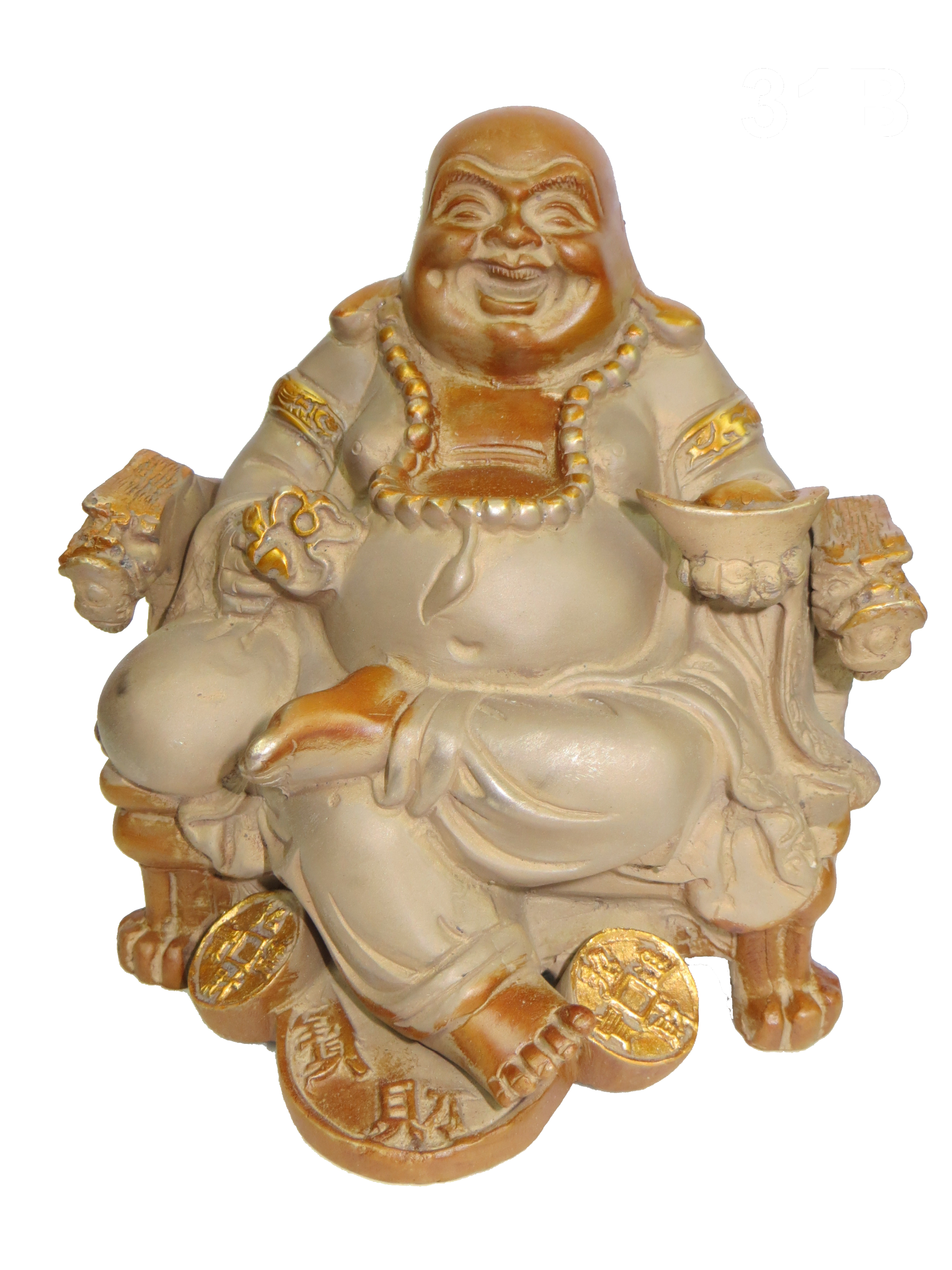21cm Brass Laughing Buddha Statue. South Indian style with blue/grey highlights. Beautiful brass statues from India. We also have some larger one off statues available, please ask for details